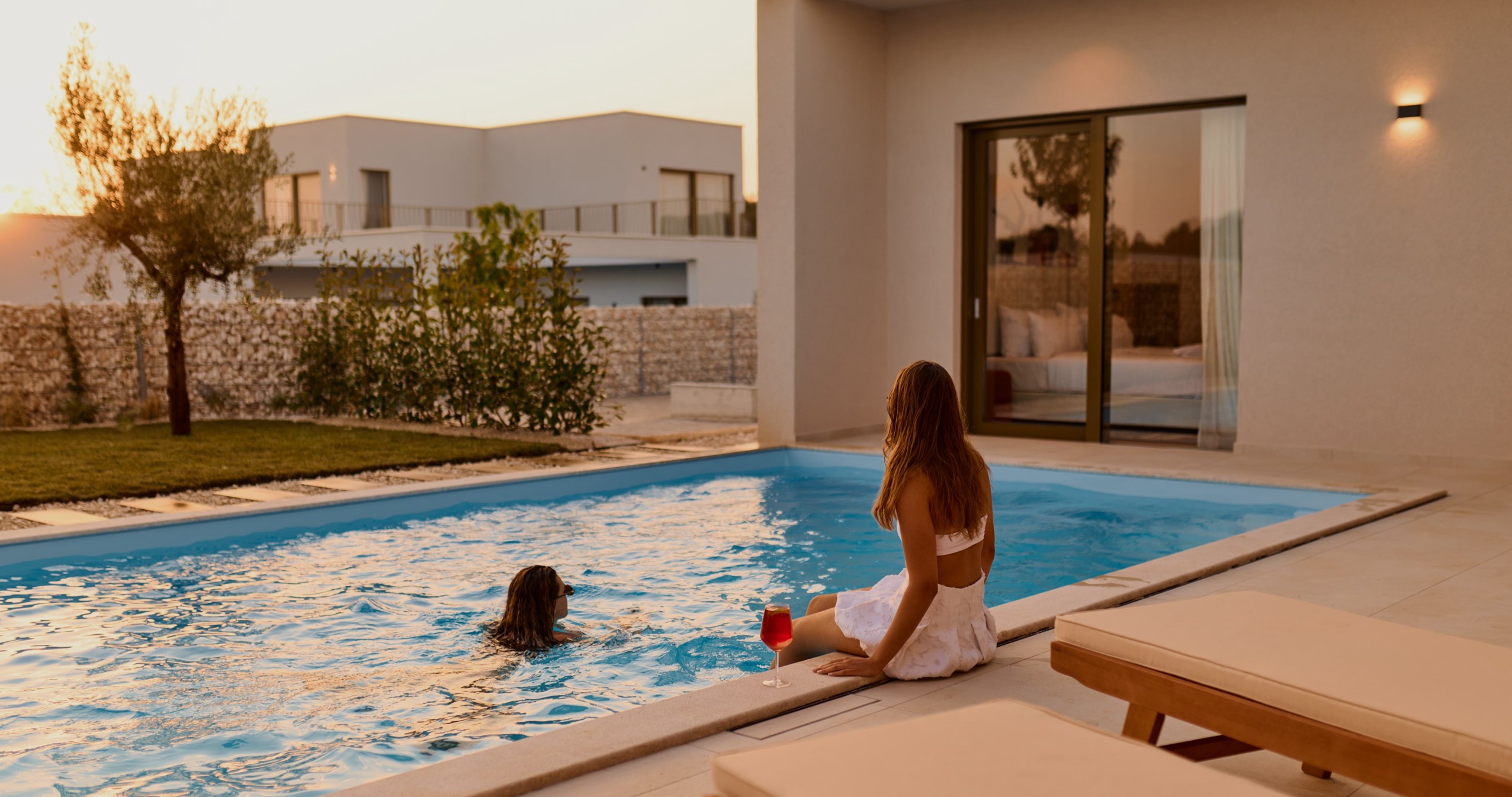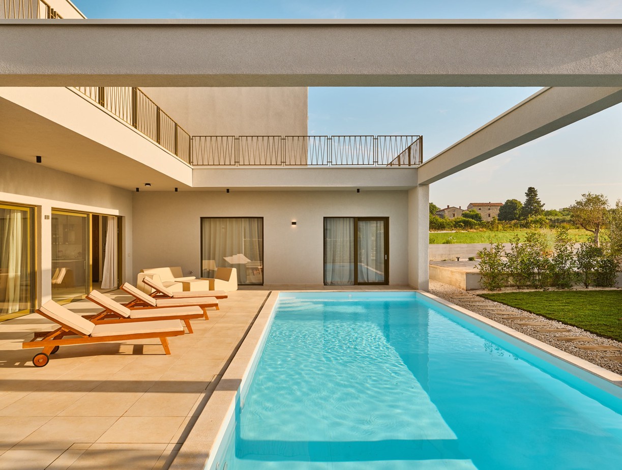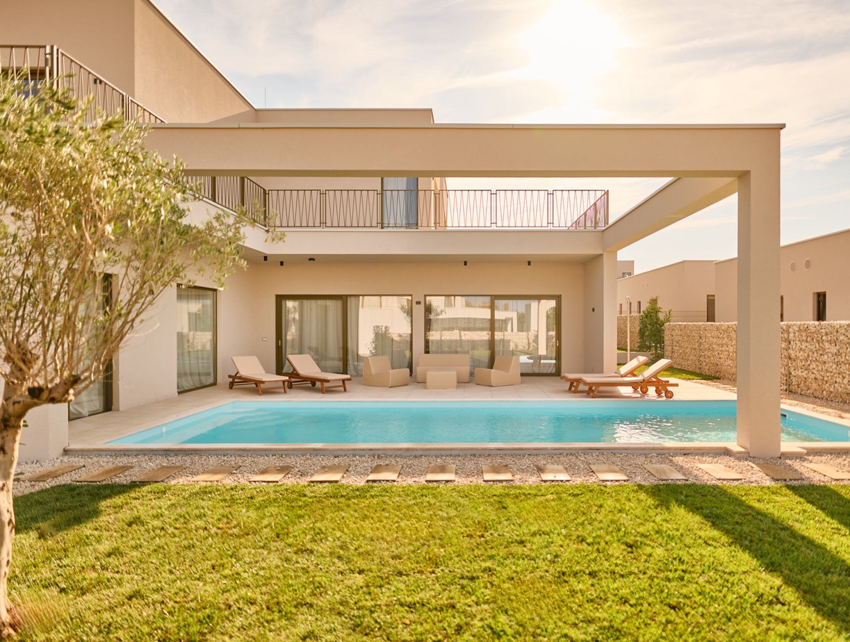 A breath from the Adriatic sea, and with your own pool just steps away, water is never far from your senses. Whether it’s the dappled shade of a natural beach or the stillness of your private sunbed, every swim is yours alone.